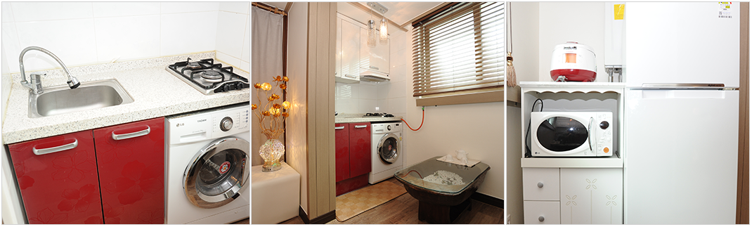 온돌방 스타일에 맞춰 인테리어된 아늑한 주방입니다.
