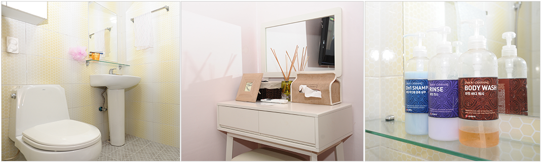 항상 구비하고 있는 단독 화장실과 모두 함께 사용할 수 있는 여러가지 많은 편의시설들이 준비되어 있습니다.