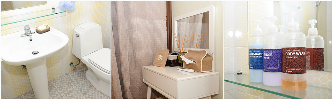 항상 구비하고 있는 단독 화장실과 모두 함께 사용할 수 있는 여러가지 많은 편의시설들이 준비되어 있습니다.